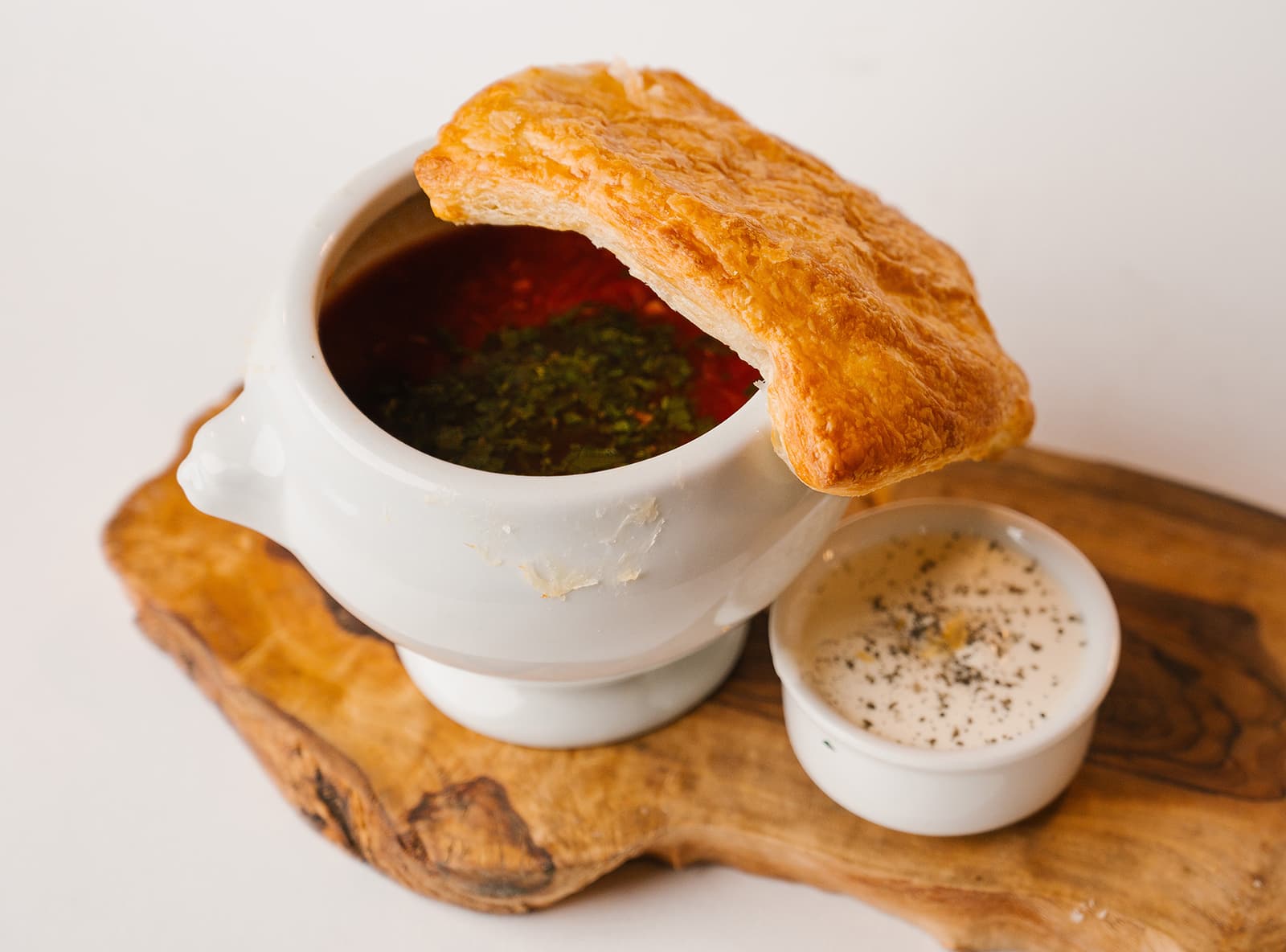 Борщ с телятиной под румяной слойкой и сметанойcontent/shop/menu/supy/108-1.jpgБорщ с телятиной под румяной слойкой и сметаной