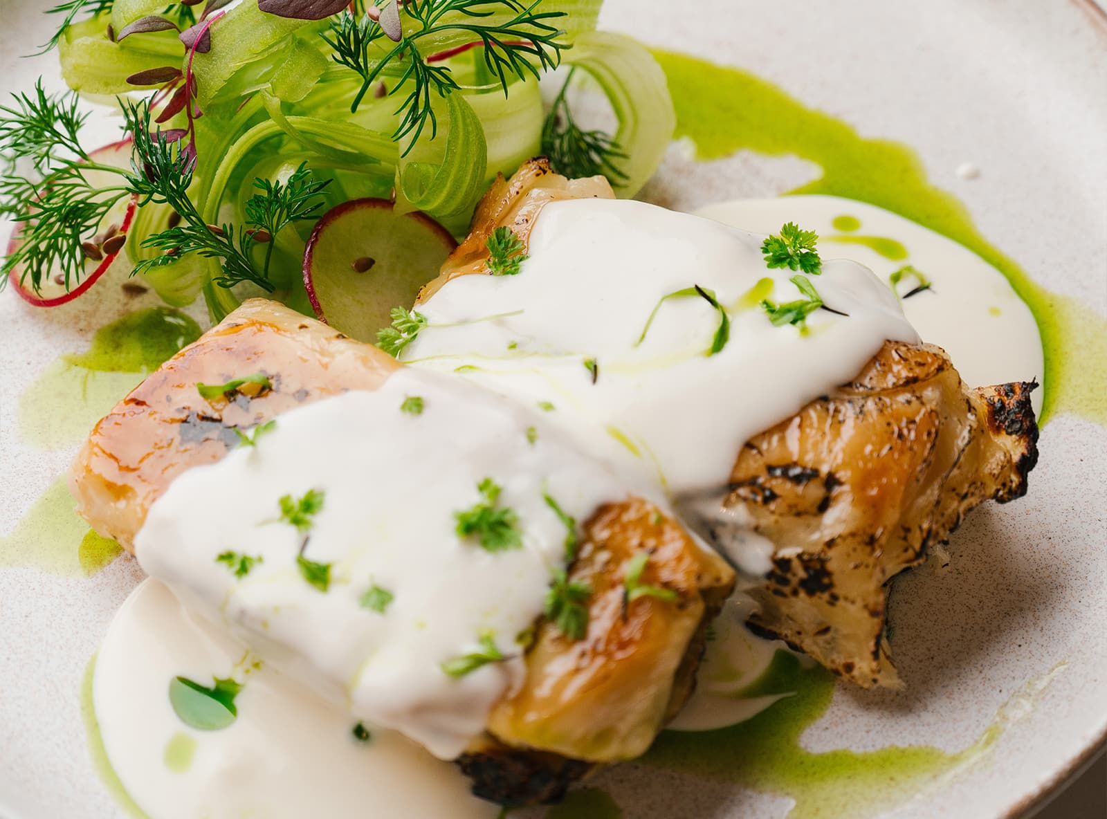 Котлеты из щуки в капустных листьях с соусом «W/W»