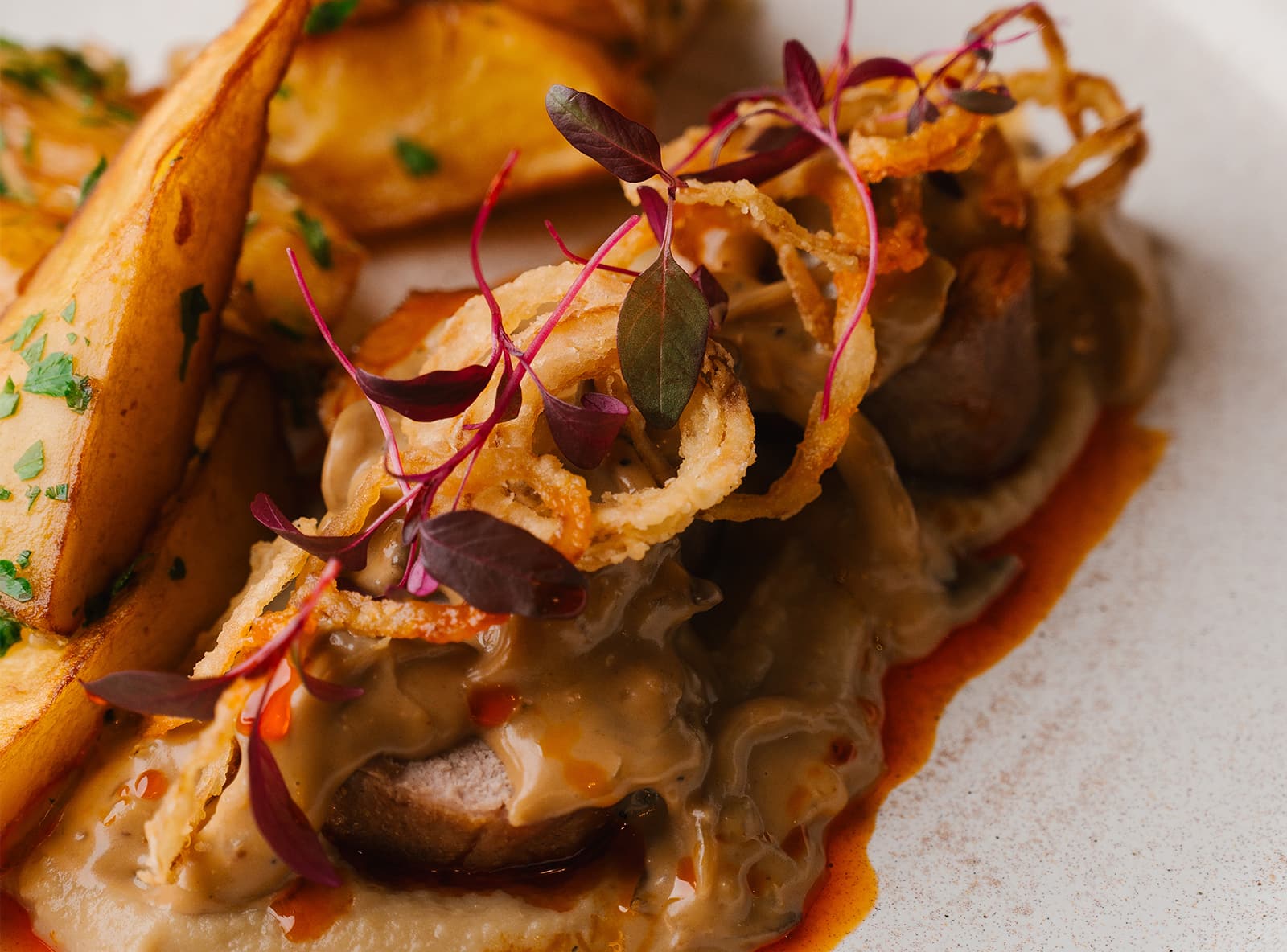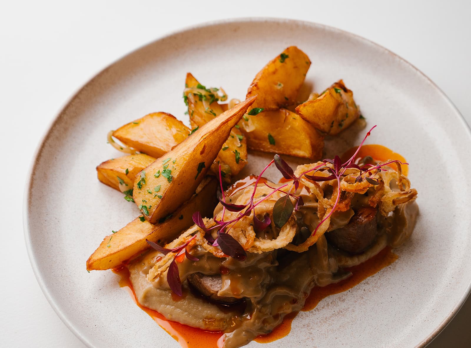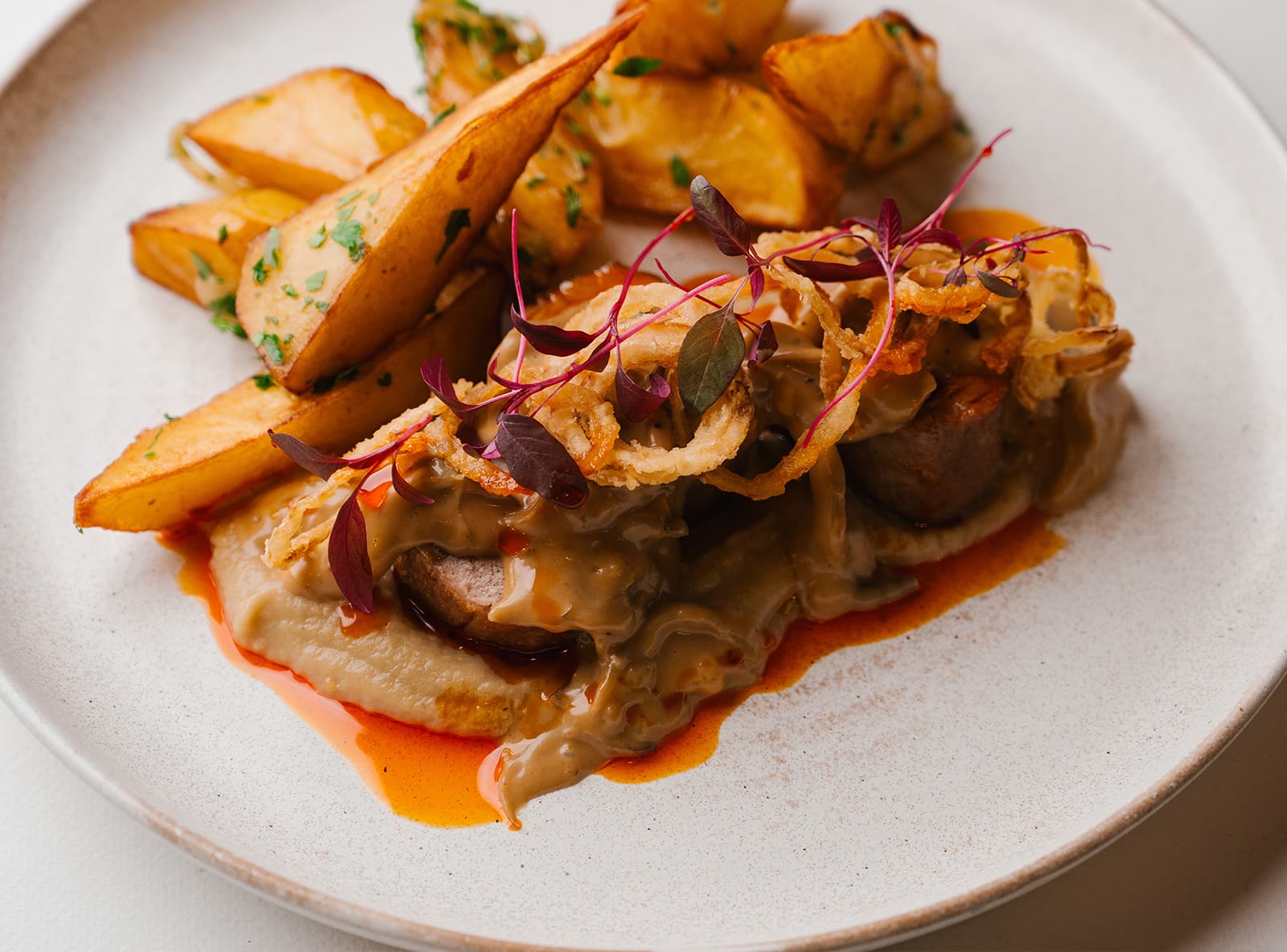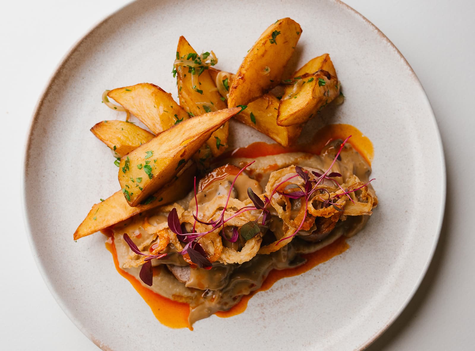 Медальоны из свиной вырезки с грибным соусом и картофелем Пушкин