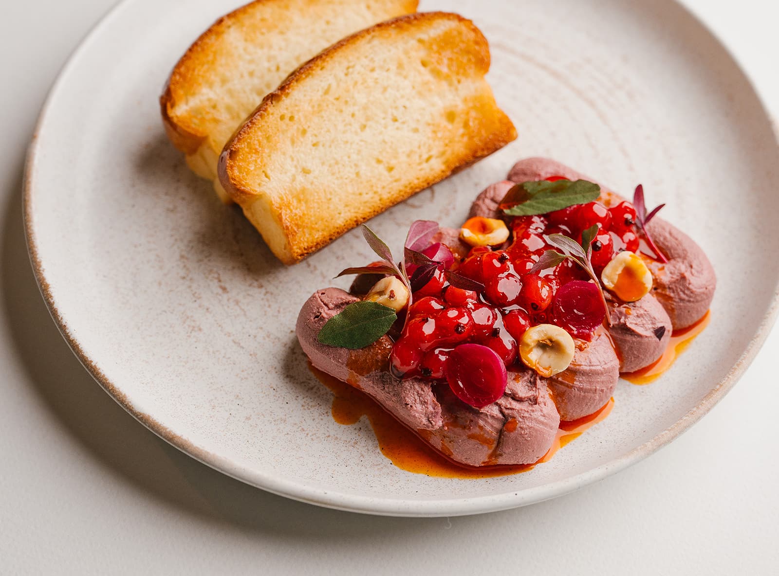 Бриошь с паштетом из цыплёнка, смородиной и лесным орехом
