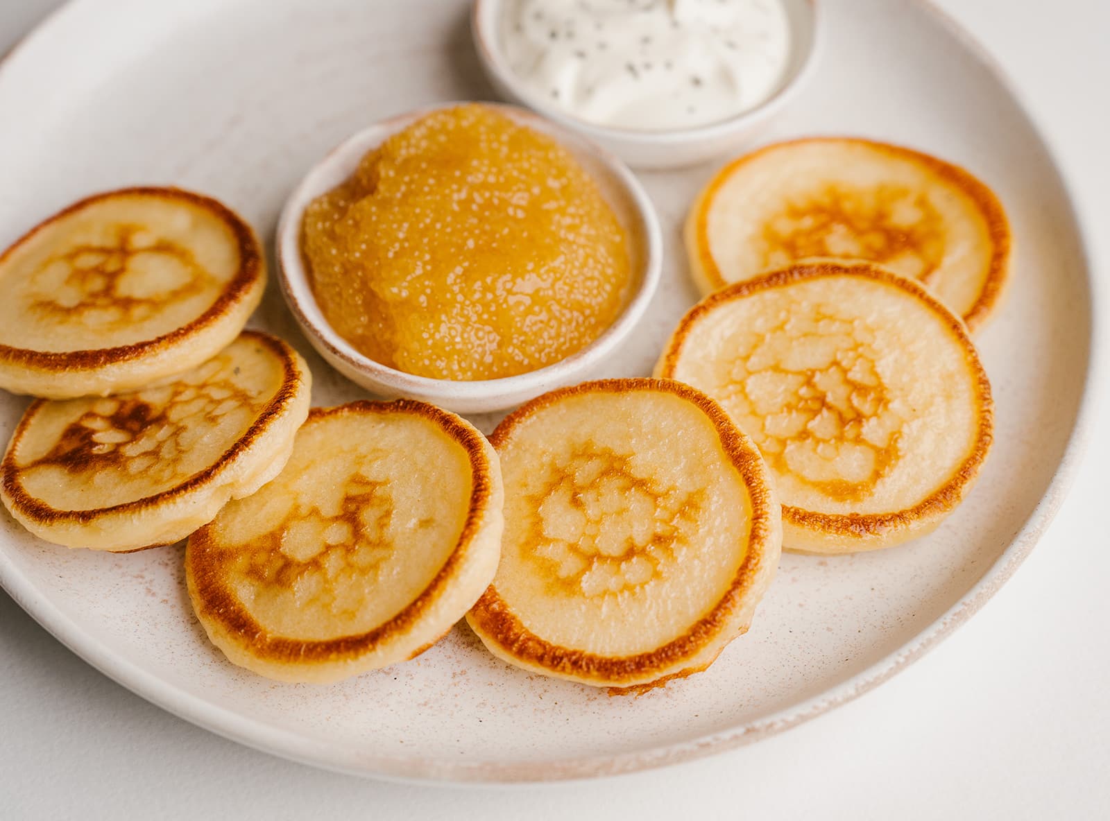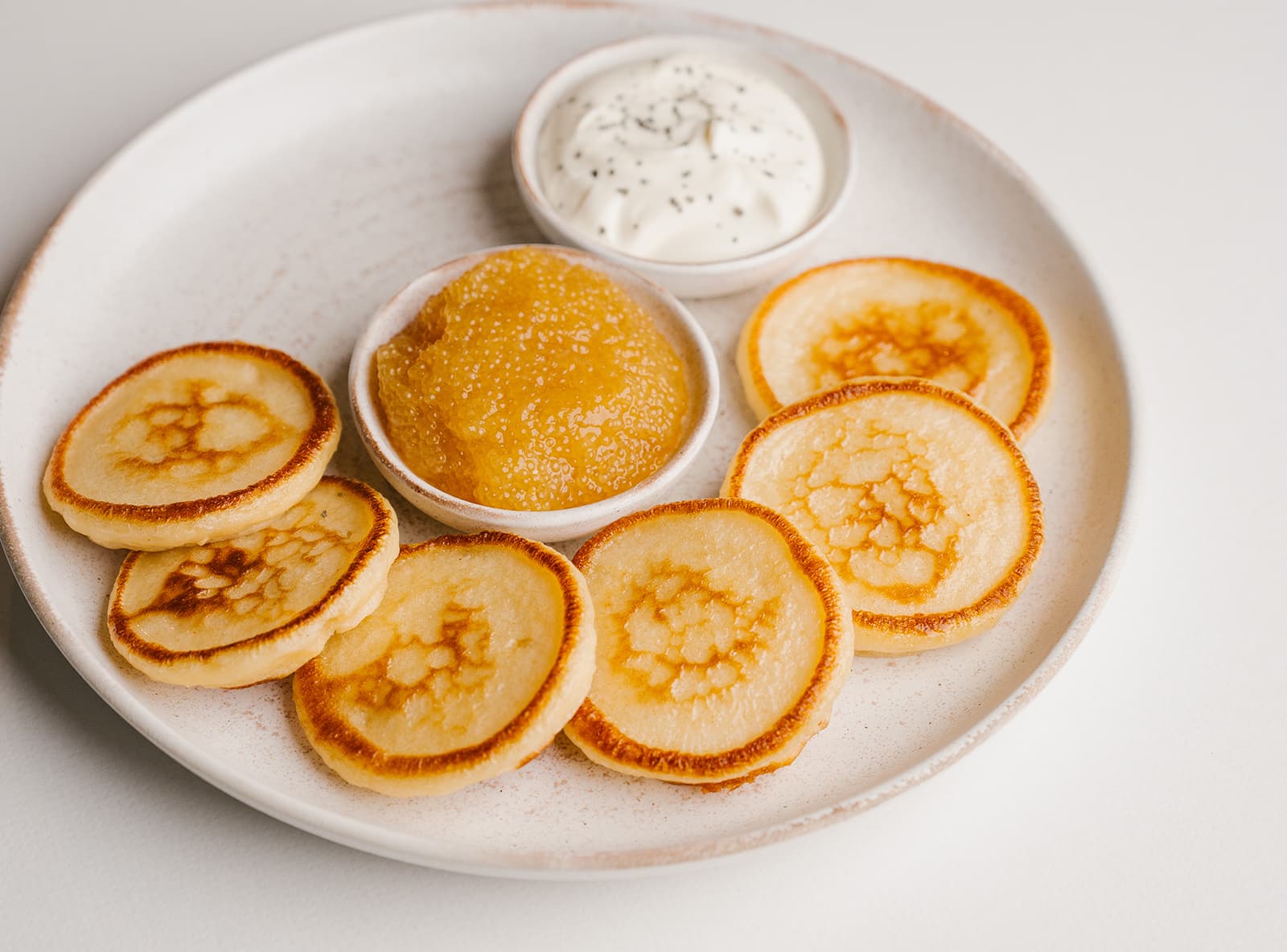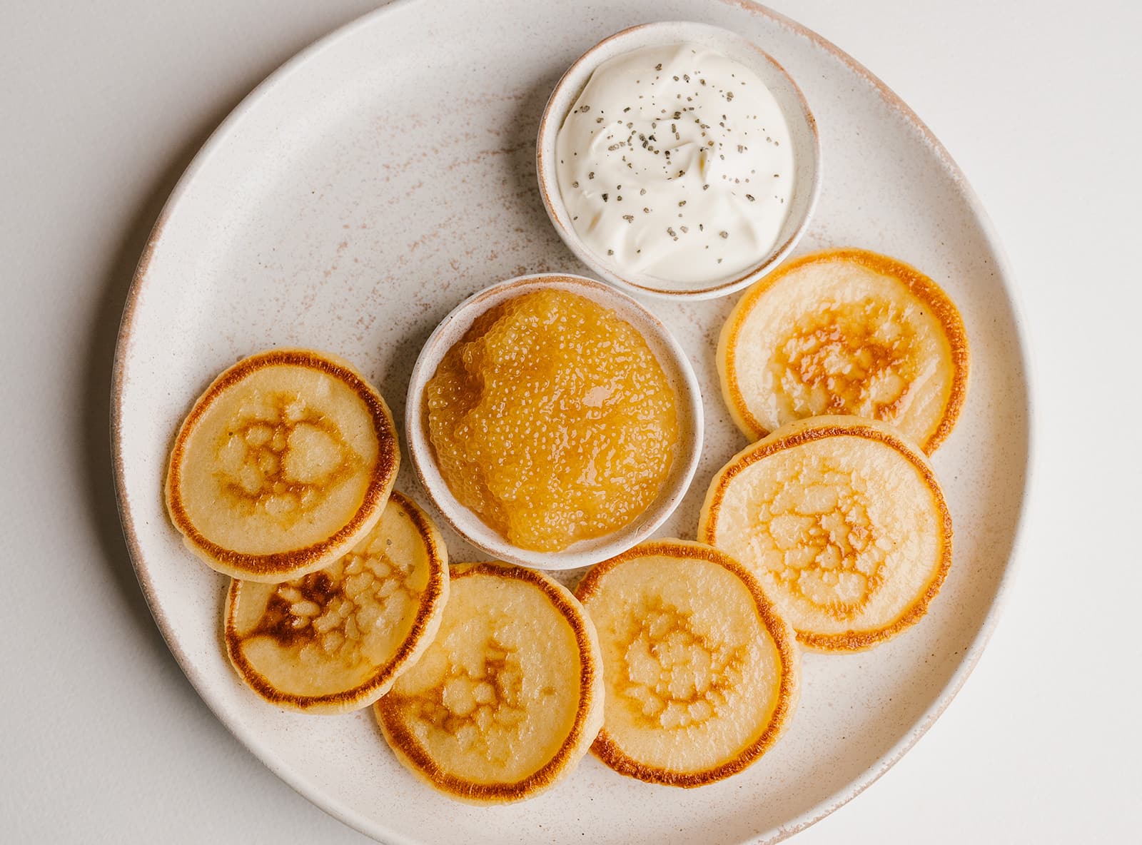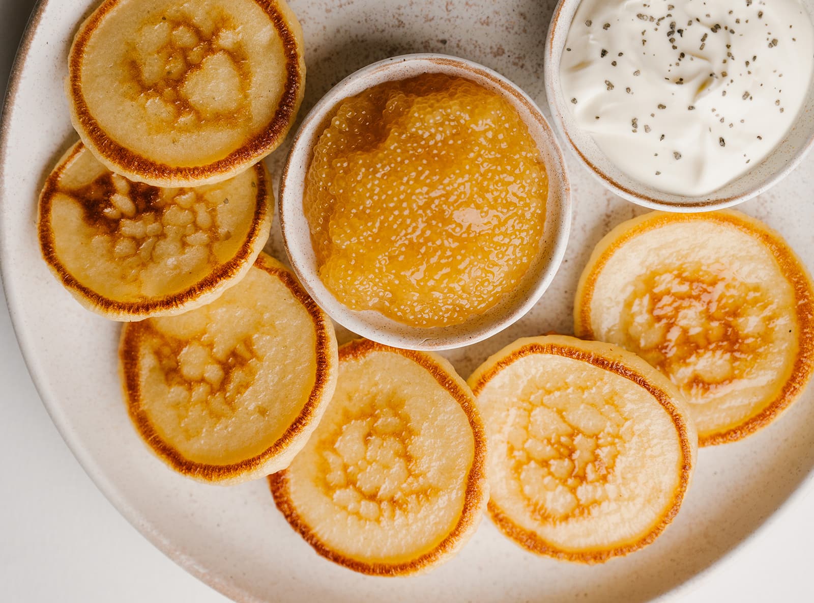 Икра щуки с домашней сметаной и пшеничными оладьями