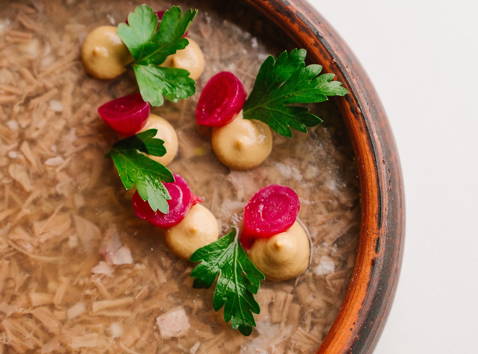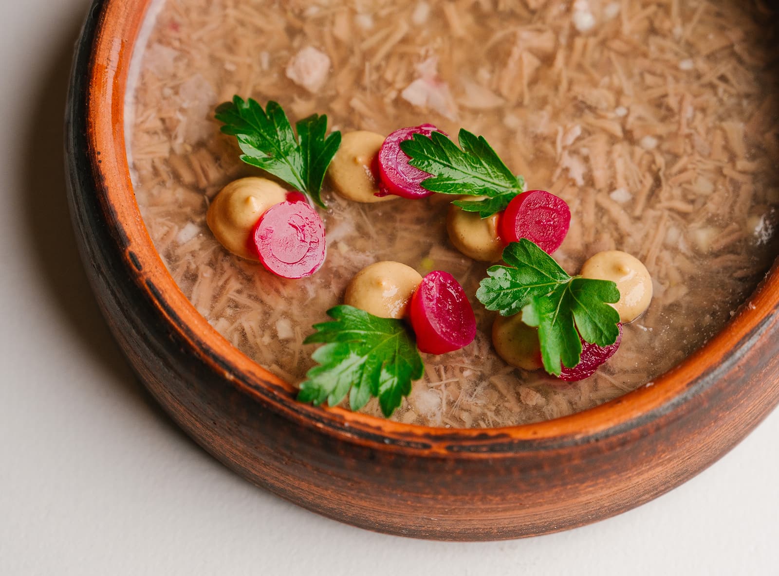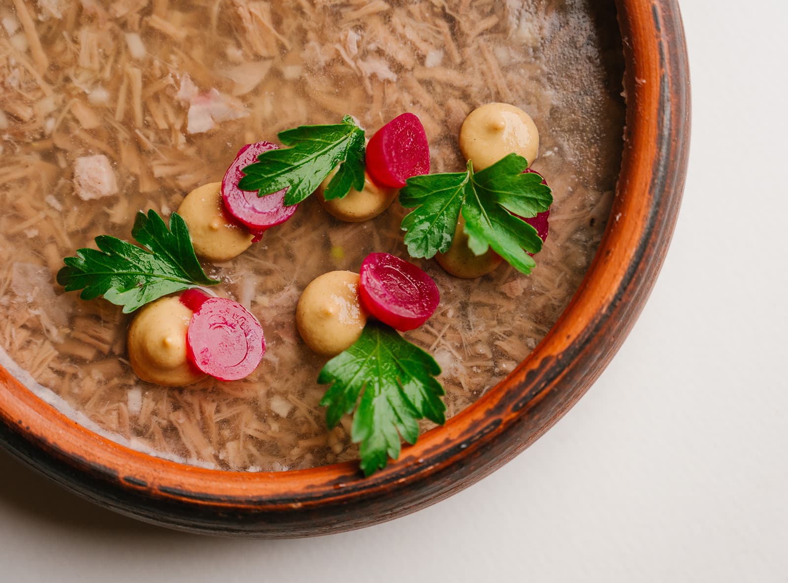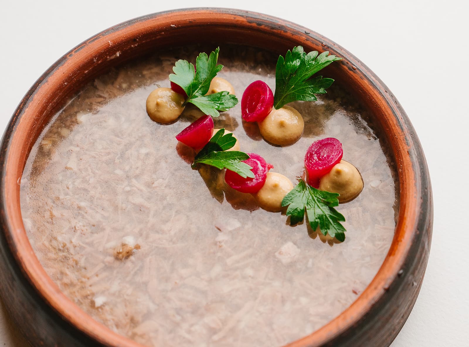 Студень из крупной дичи, томлёный в печи с лесными травами