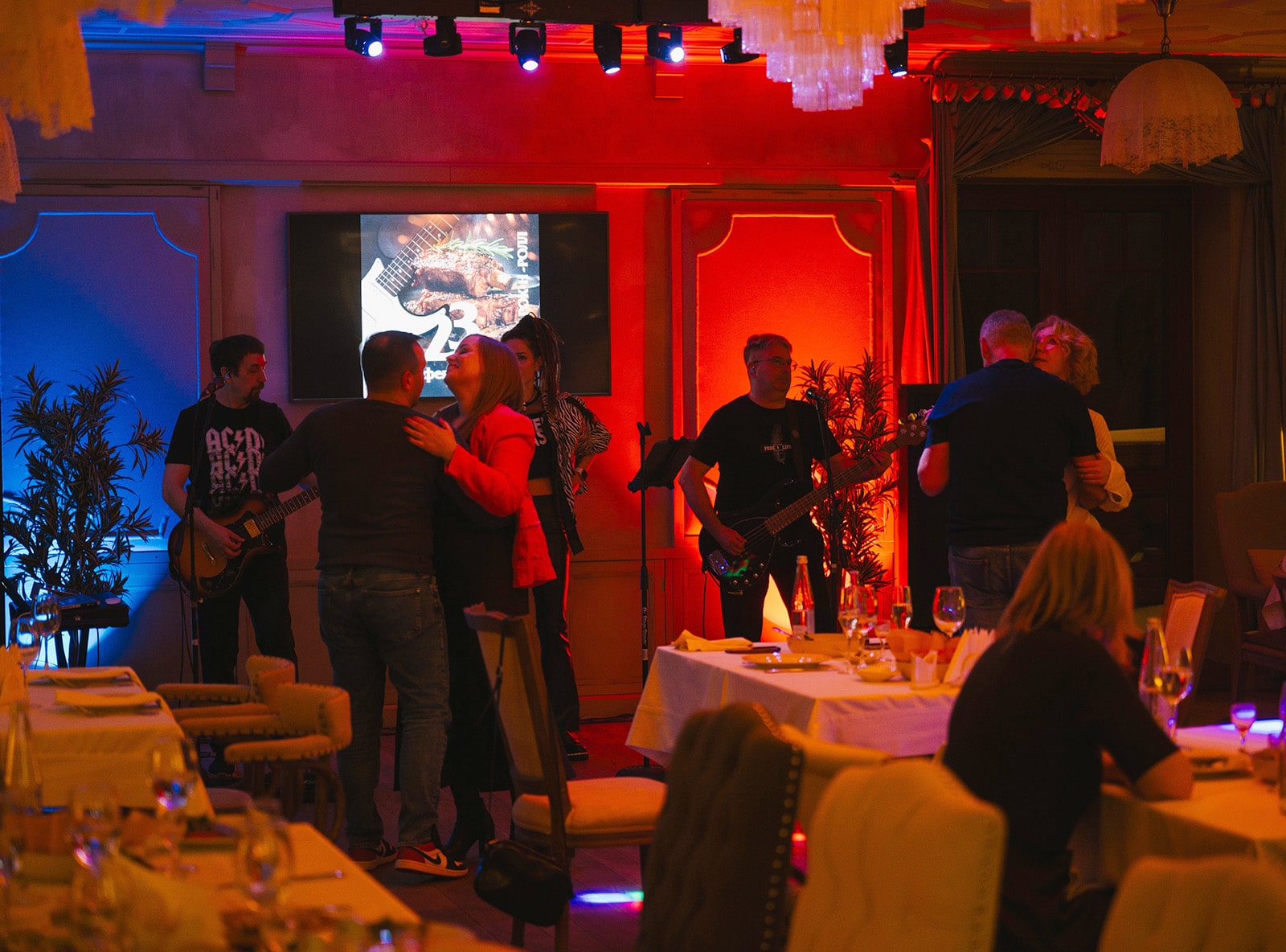 Весь вечер будет сопровождаться живыми аккордами, которые разогреют ваши сердца и заставят двигаться от первого куска к последнему аккорду.